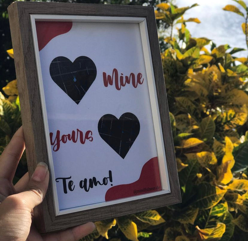 Cuadro tamaño 5x7. Locación de primer beso, donde nos conocimos, primera cita, donde te gustaría ir, etc.